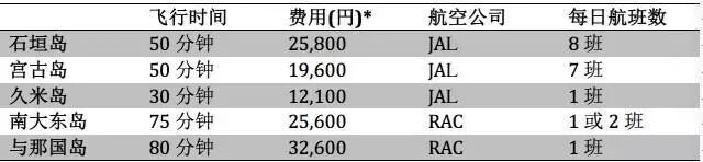 ▲那霸至各离岛航班参考,机票价格可能产生变动,具体以航司价格为准。