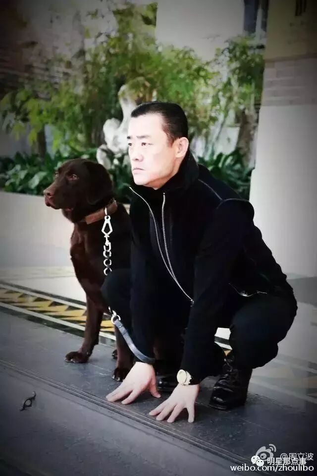 还有周立波的亚洲蹲,他和一只狗蹲在一起,还给图片配了文字“提高警惕,保卫狗粮”,但是感觉毫无违和感啊。
