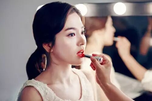 乔妹的标志是水润性感双唇,配上韩国流行的咬唇装更是韩国美唇一姐。16年流行的咬唇色和乔妹来示范。唇膏只涂在嘴唇中间内侧,不要覆盖全部唇部,用棉棒晕染开,稍作润色就可以了,不然会显得特别造作。