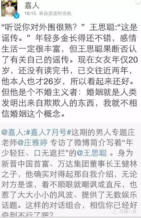 王思聪没有否认,回应是:“门当户对不是我性格!爱情是很纯粹的东西!”