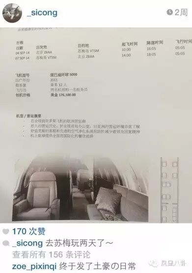 王思聪2014年9月晒出包机旅行单,曾带妹子包机游苏梅岛~
