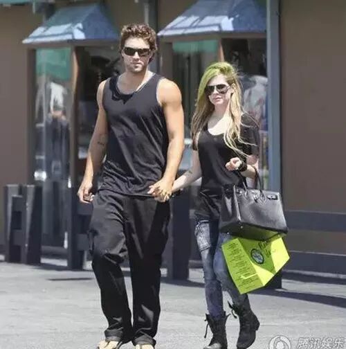 还有一次,艾薇儿和男友出去玩,被一群酒疯子殴打的时候也是男友在旁边护住。不过艾薇儿还是破了相,哎。。要这大块头有什么用?