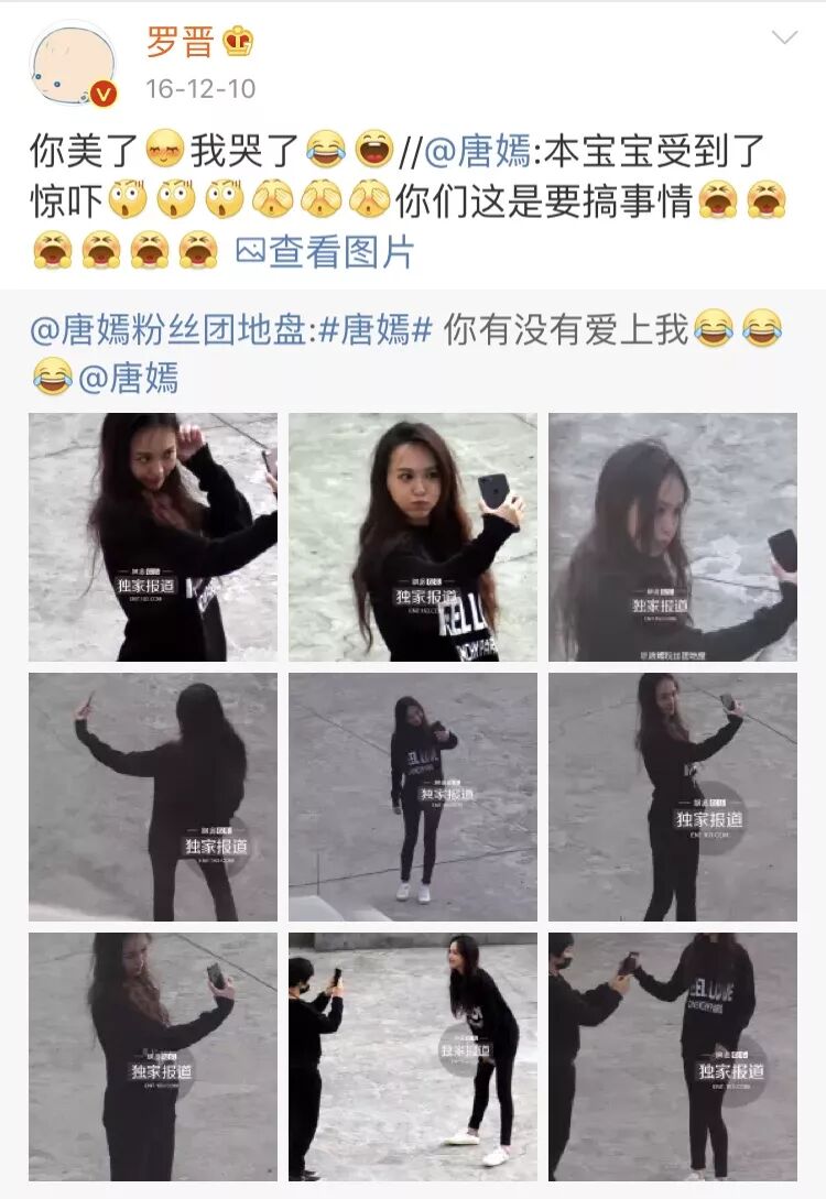 而以前不常发微博的罗晋在微博上也是大胆表白,卖力为唐嫣宣传。比如↓↓↓