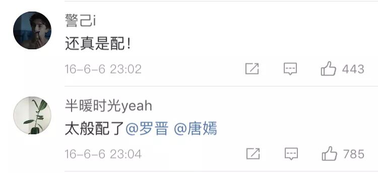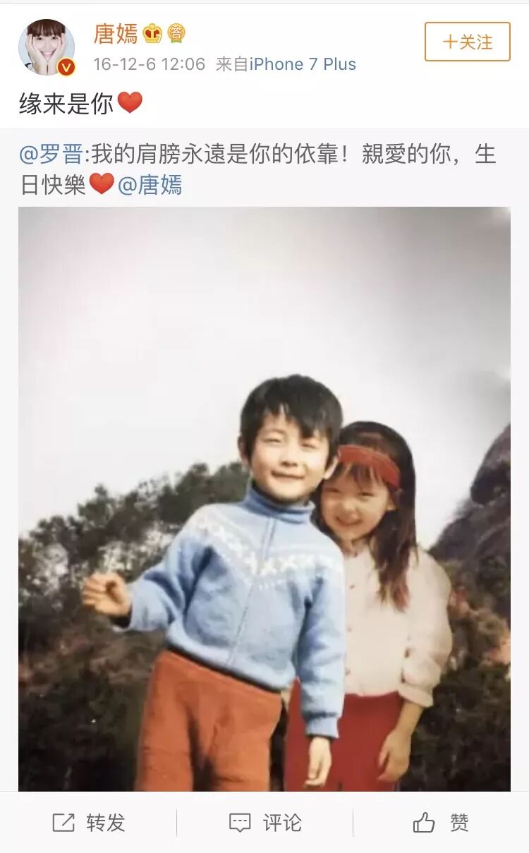 话说回来,这一对还真是因戏结缘。大概让大家站稳cp的就是在他们公开时热播的《锦绣未央》了吧,当时唐嫣罗晋为宣传剧的互动微博底下就都是:“太配了!”