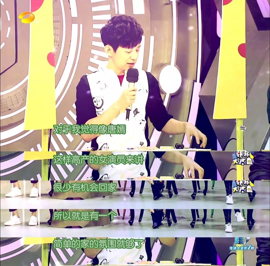 在同月17日播出的快本上,唐嫣谈到罗晋就是嘴角上扬,开心+害羞的小神情。
