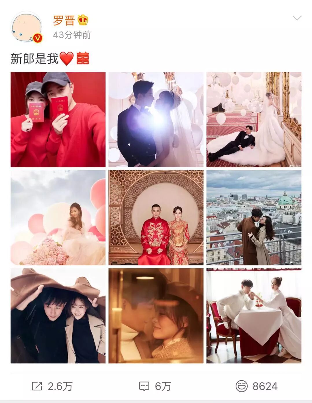 微博上当然一片祝福声。