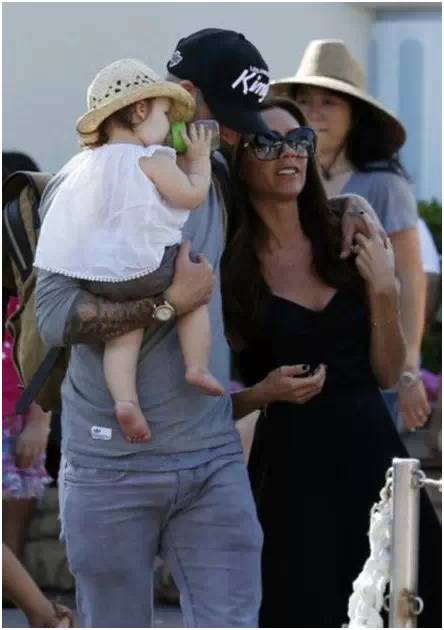 另一边,小贝永远抱着孩子,贝嫂永远负责貌美如花。
