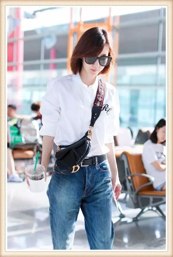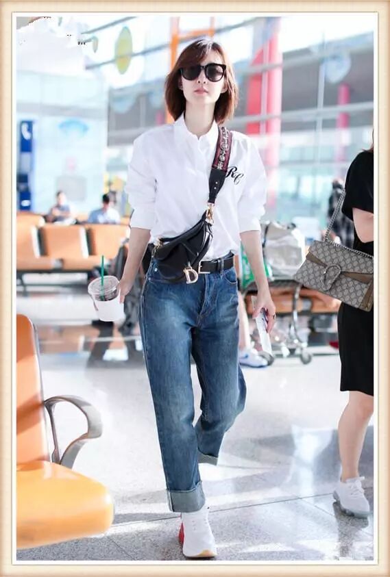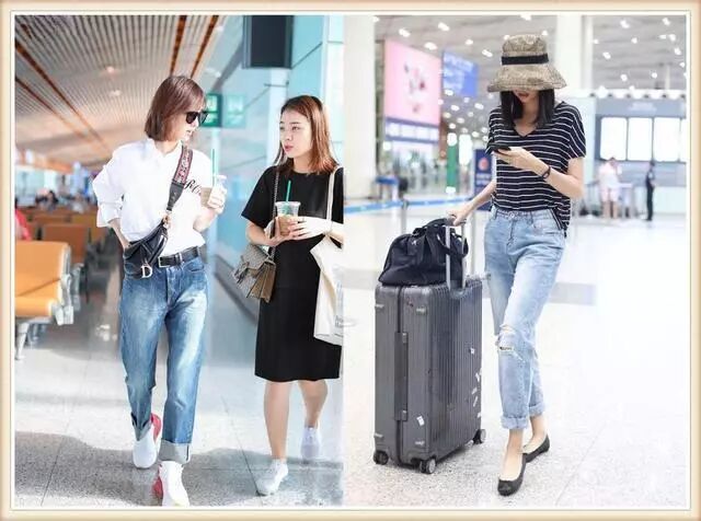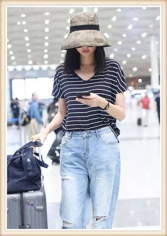 简单的条纹上衣搭配上牛仔裤的穿着还具有很好的减龄效果,让张梓琳看起来更加的年轻,而且并不是高腰的牛仔裤穿在张梓琳的身上,同样让她的腿部线条看起来很是修长。