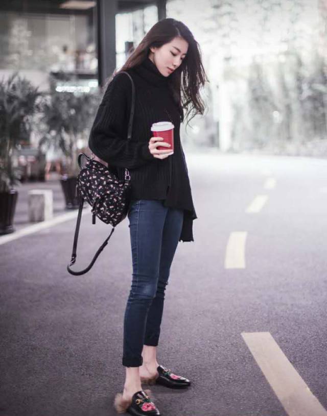 GUCCI刺绣毛拖鞋,Givenchy木槿花双肩小背包~这一身多么的平(低)凡(调)朴(奢)素(华)啊~~ ▼ ▼ ▼