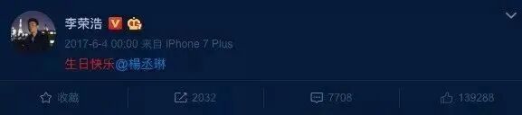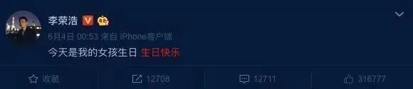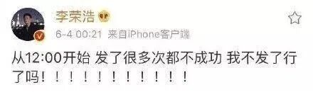 两人就这样互发了N年,从没间断,只有去年微博后台卡了一下,李荣浩迟到了一小会儿。还把他整崩溃了。