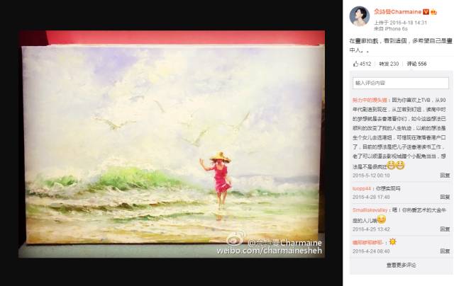 油画,也是明星佘诗曼的特别爱好。她说,(油画创作)是一个完全属于自己的空间,想着自己喜欢的事,天马行空云游四海,沉醉……