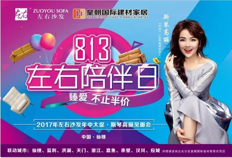 8月13日明星斯琴高丽与你相约仙桃皇朝(农贸店)左右沙发,现场签售,百万返现,9城联动,仅此一次!!!