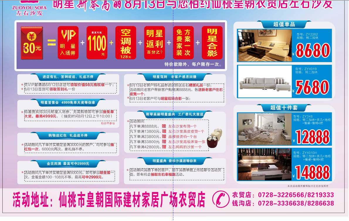 活动地址:仙桃皇朝国际家居建材城C区2楼左右沙发