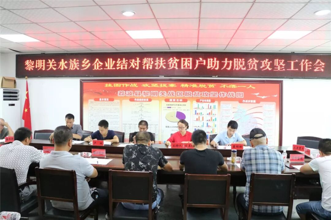 为认真贯彻落实中央、省、州、县脱贫攻坚的决策部署,扎实推进脱贫攻坚工作,广泛动员非公有制经济组织和社会各界积极参与结对扶贫工作,探索推广扶资金、扶产业、扶就业、扶信息的扶贫模式,弘扬扶贫济困传统美德,帮助农民群众脱贫致富,为全面建成小康社会贡献力量。9月21日,黎明关水族乡召开企业结对帮扶贫困户助力脱贫攻坚工作会。乡班子成员、各村代表以及乡域内17家企业参加会议。