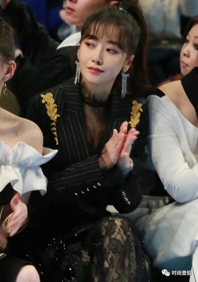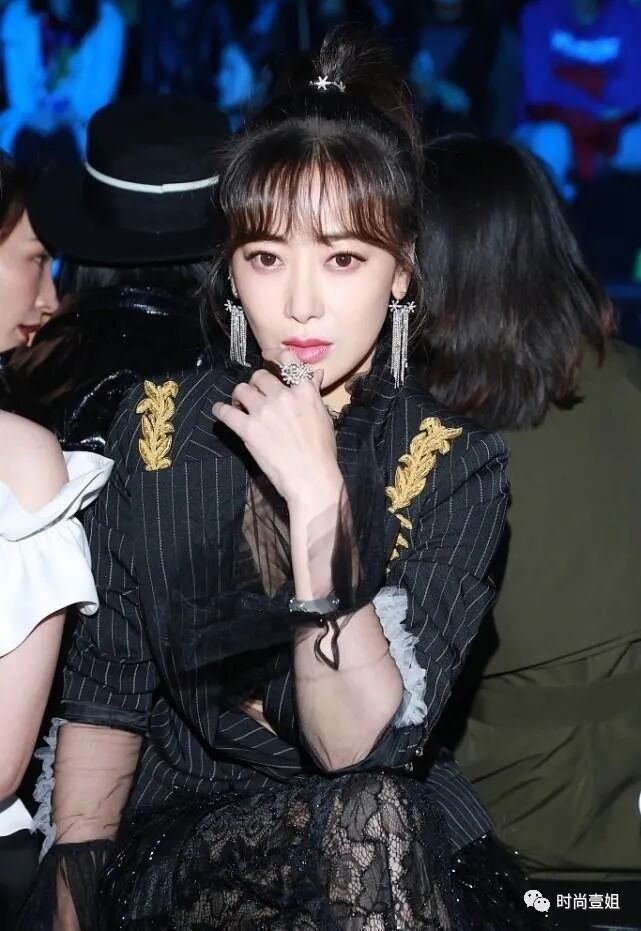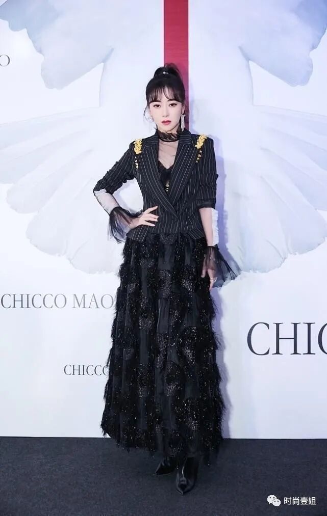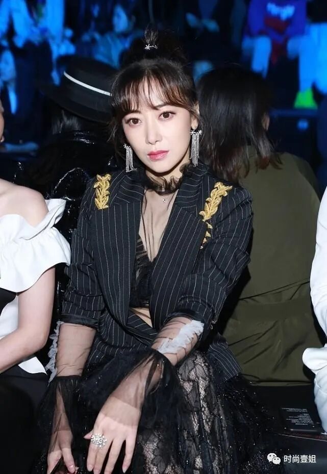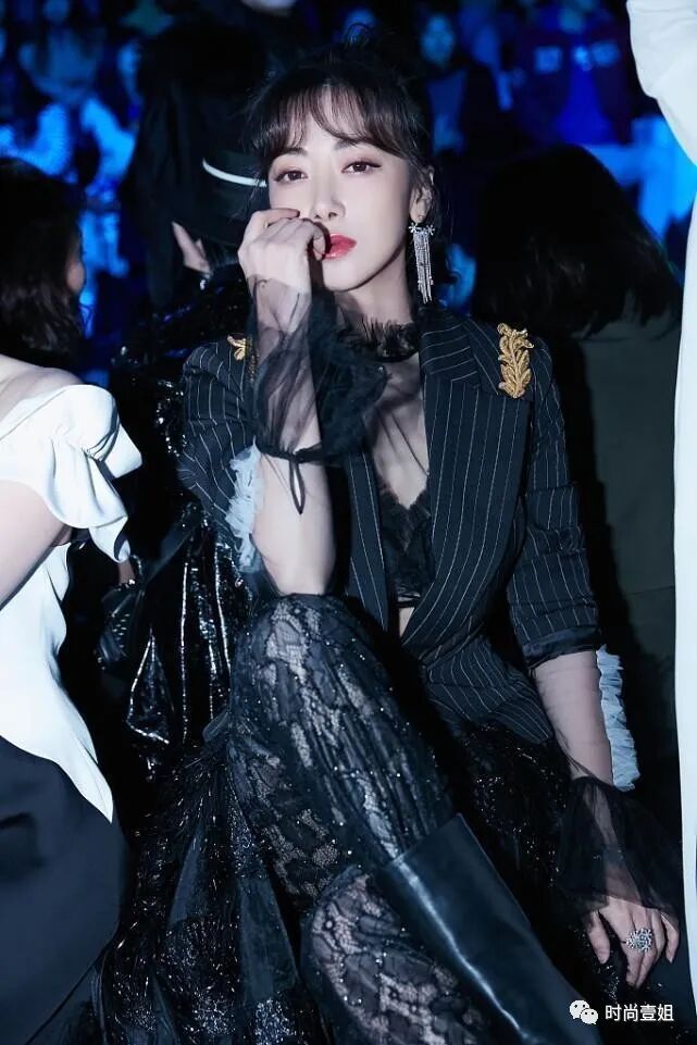 陈紫函穿西装的方式挺特别,条纹设计看着不起眼,配蕾丝裙挺招摇。西装搭配蕾丝裙的组合可以说是两种不同风格的混搭。