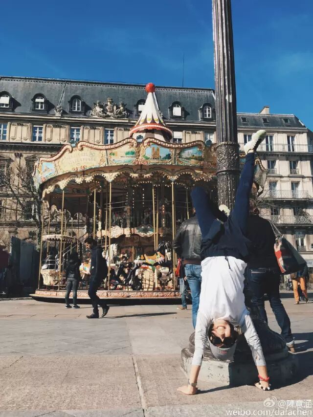 陈意涵还有一个梦想,就是在全世界100个城市倒立。米兰、巴黎、哥本哈根、马德里,每到一个城市,陈意涵都会倒立看世界。