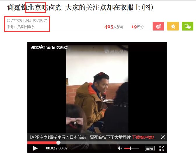据悉,这个视频发生在2017年3月份,谢霆锋当时在北京北新桥吃卤煮,是为了录制节目,有图有真相。