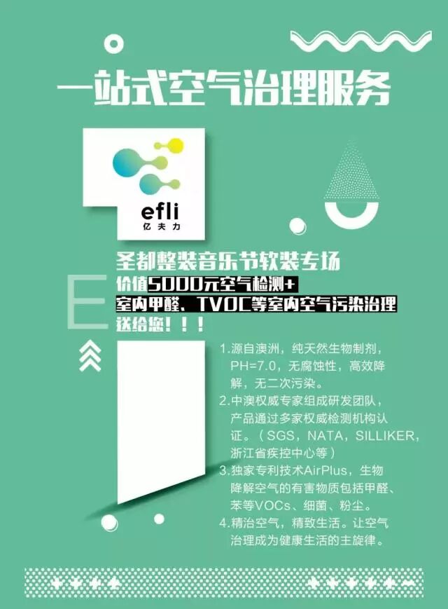 6月16日,圣都整装音乐节在杭州海外海商城3楼隆重举行。亿夫力全权负责整个展厅的空气治理,确保音乐节期间各展厅没有异味,让活动顺利进行。