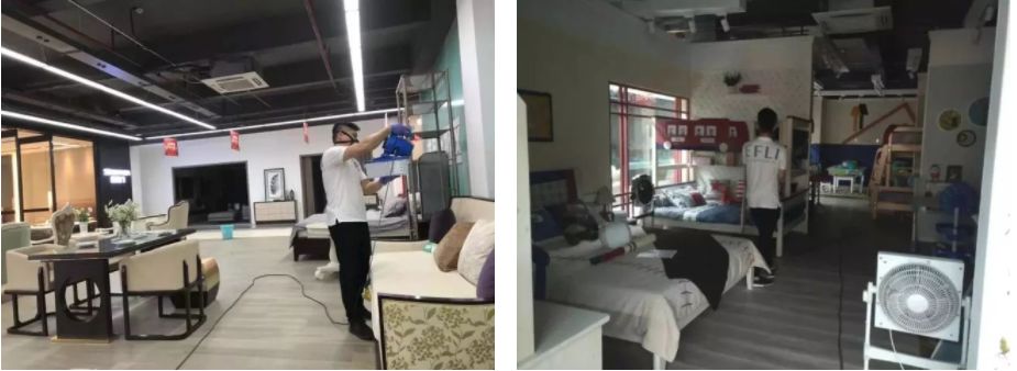 第一步,亿夫力工作人员根据检测结果对展厅整体进行甲醛、VOC治理。
