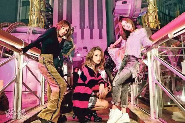 阿娇(左起)、容祖儿及阿Sa合作拍MV,好姐妹尽显默契