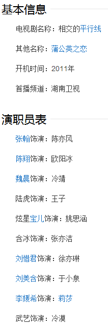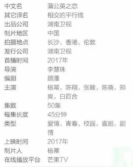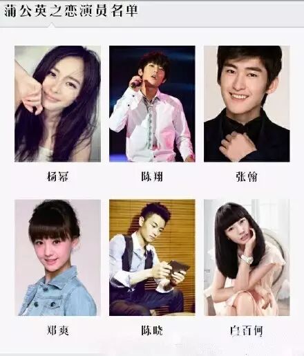 最近还真有一部名叫《蒲公英之恋》的偶像剧传出张翰郑爽同框的消息,据悉,该剧由湖南卫视制作,李慧珠导演,顾漫编剧,杨幂、陈翔、张翰、郑爽、陈晓、白百合等领衔主演。剧中,杨幂饰演姚思涵,陈翔饰演欧阳晨,张翰饰演陈亦风,郑爽饰演张亦洁,陈晓饰演赵冷清,白百合饰演肖雨晴。之前百度还有百科来着。