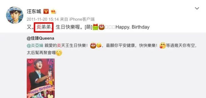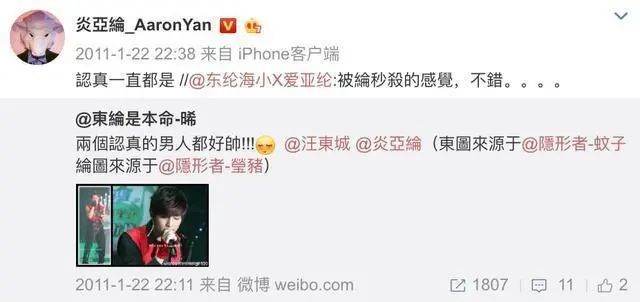 在炎亚纶的社交账号上,2010年至2011年期间,汪东城的名字频繁出现。