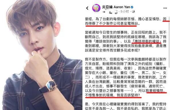 炎亚纶不满剧组 “置身事外”的处理态度,为了捍卫工作人员的权益,炎亚纶不惜以停拍来对抗剧组。