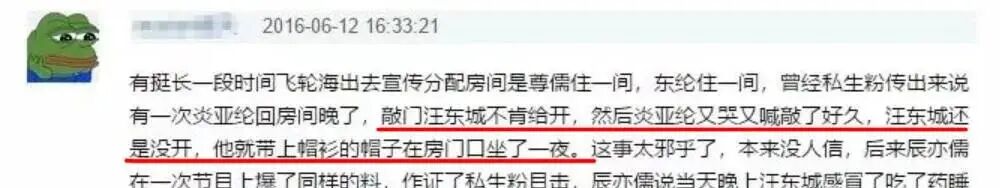 两人的“兄弟情”闹得沸沸扬扬,有网友站出来爆料,称汪东城不给炎亚纶开门,炎亚纶宁愿在门口苦等一夜,也没有选择再开一间房休息。