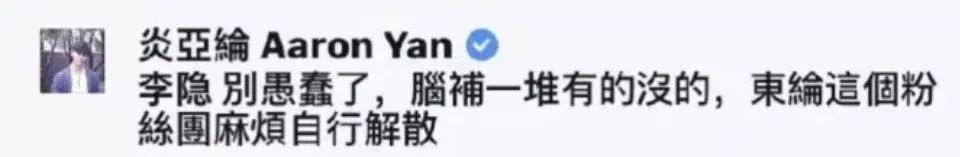 不仅如此,只要是网上有关汪东城的消息,哪怕内容与炎亚纶无关,炎亚纶也会转发评论。