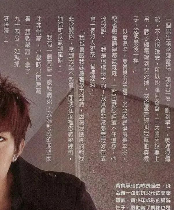 在这样的环境中成长,炎亚纶觉得自己被生活和父母死死掐着脖子,无法呼吸。