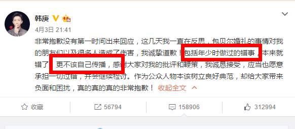 伴娘事件!柳岩道歉,包贝尔后道歉,韩庚被爆黑料道歉....... 内地男星 2016-04-21 06:59:01 677 创作不易,用心坚持,欢迎请BaGua喝几杯爱心咖啡!打赏并支持本文 打赏并删除本文 提示:点击↑上方"蓝字"免费关注!每天更新!脱口秀因为喜欢 所以选择分享包贝尔婚礼上的伴娘事件这几天一直在上热搜,小编也做过一期。这样的事情曝出来,按理说应该是新郎和伴郎道歉,让人没想到的是柳岩先站出来了。柳岩先是对没有及时澄清向包贝尔夫妇道歉,然后说了自己的感受,一大批网友表示心疼!几个小时后,包贝尔顶不住压力,发表了致歉...大部分网友对此不买账,本来嘛,老老实实说我错了开玩笑开过头了,给柳岩和社会带来的消极影响表示歉意就行了,还解释一大堆,这道歉一看就不诚心。。。广州海关跳出来,说:这个锅海关不背,给这么有趣的官方点zan!就在大家都质疑包贝尔撒谎的时候,婚礼团队晒出证据。还是被网友喷了伴郎的表现呢?我们来看看杜海涛发“骂人”后秒删。有人猜测是举报不小心发错了。。。以前下跪权志龙的黑历史也被挖出来狂骂。媒体报道李灿森是伴郎团里第一个出来道歉的,他没有参与游戏,小编本来是去点ZAN的,结果那条道歉的被删了,还加了几条还有这个,他的情商我也是没sei了被网友狂喷最后说说韩庚,4月1号居然还在发自拍做广告。。。然后被各种扒黑历史----我是韩庚黑料的分界线----小编不是故意黑,只是把最近娱乐圈的那点事整理给大家看看【黑料之一:偷电脑 】之前,韩庚在宣传电影的时候,谈到自己青春期的时候特别坏。他在采访中说,曾在13年前租借了同学的电脑,同学没记得找他要,他就偷偷地将电脑卖掉了。额,你看到旁边范冰冰的尴尬了吗?在旁边的撒贝宁试图圆场,说韩庚这属于坦白自首,还是可贵的,而且13年前发生的事件已经过了追诉期。还假调侃真提醒地说:你们不要见到法制节目主持人就什么都说嘛!但是还是没有拦住啊!随后他还聊到自己没钱买磁带就去音像店里面偷,一个袖子里面放5盒,一次偷10盒。看到这里,竟然有粉丝觉得这就只是开玩笑而已!这真的是“真粉”啊!【黑料之二:骗同学喝尿】在做客郭德纲节目的时候韩庚自己说的 谁还没个年少的时候啊!【黑料之三:录节目罢录】2010年的时候,在深圳卫视的节目中中途罢录2012年,在《天天向上》中途罢录。 还好当时有wuli涵哥在!中间还有一次,应该就是他们都是特步代言人。所有的明星都发了祝福,到韩庚的时候,他突然....小编此刻特别懂旁边潘玮柏的心情!小编觉得,谁还没个过去呢?但是,很多时候,有的事情,不是那么的伟大,咱就低调点,可以不!顶不住舆论的狂轰滥炸,韩庚出来道歉了,连同以前的事...其实这个事就是尊重人的问题,尤其是对!大家知道什么是绅士手吗?娱乐圈里的绅士也是很多滴!来看看吧!---我是绅士的分界线---陈伟霆在开始接受采访的时候是这样说的,其实他在拍戏的时候也做到了!和男的合照的手则是完全放在肩上还有吴亦凡和刘亦菲一起合作还有就是张杰,想当初,这张背手照让多少人为之点zan李易峰霍建华鹿晗张艺兴,尽量不抓女生的手,而是抓了胳膊金秀贤李光洙易烊千玺和女性舞伴跳舞时的浮空手,小小年纪就知道避嫌。 还有吴磊,下车的时候帮蒋欣护头和“姑姑”陈妍希出席活动,他细心牵着姐姐的手,怕她摔跤,尽心为她保驾护航参加《快乐大本营》,他第一时间挡在娜姐身前有没有你喜欢的男神?有的话赶快抱走! 创作不易,用心坚持,欢迎请BaGua喝几杯爱心咖啡!打赏并支持本文 打赏并删除本文 感谢您的支持鼓励,我会继续努力的!文章地址:用户邮箱:打赏金额:USDT 请输入数字点击”去打赏“,即可进行打赏支持本文章哦 韩庚 发表评论