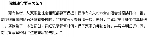 霍家的家规不允许轻易抛头露面,这对于新时代女性的朱玲玲来说本身就是束缚,甚至还传出找自家人借首饰还要登记的新闻。