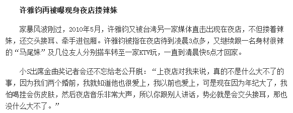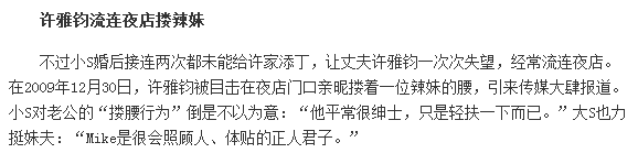 你看,在舞台上强悍作风如小S,在嫁入许家后,不仅要经常为老公的花边新闻所烦恼,还要出面帮他圆说法。