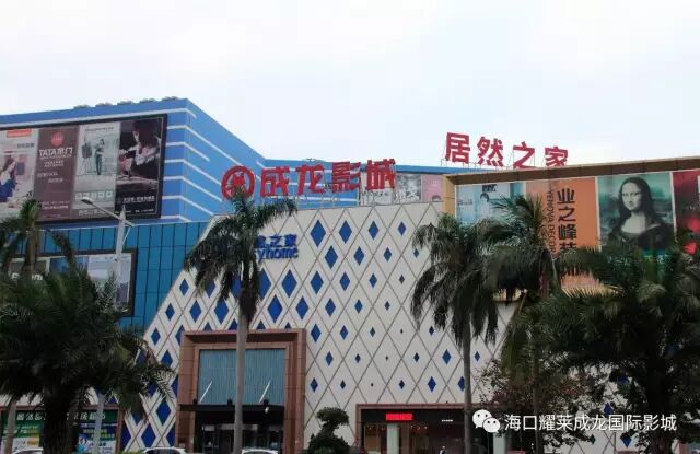 JACKIE CHAN 耀莱成龙国际影城(海口居然之家店)是成龙大哥旗下的一家电影院,位于海口市秀英区滨海大道102号居然之家八楼(滨海大道与海港路交叉口),西邻美丽的西海岸旅游度假区,东靠秀英港码头,是一家集休闲、娱乐、视听、产品等多方面为一体的现代化五星级影城,影院周边交通方便,各项配套设施十分完善。