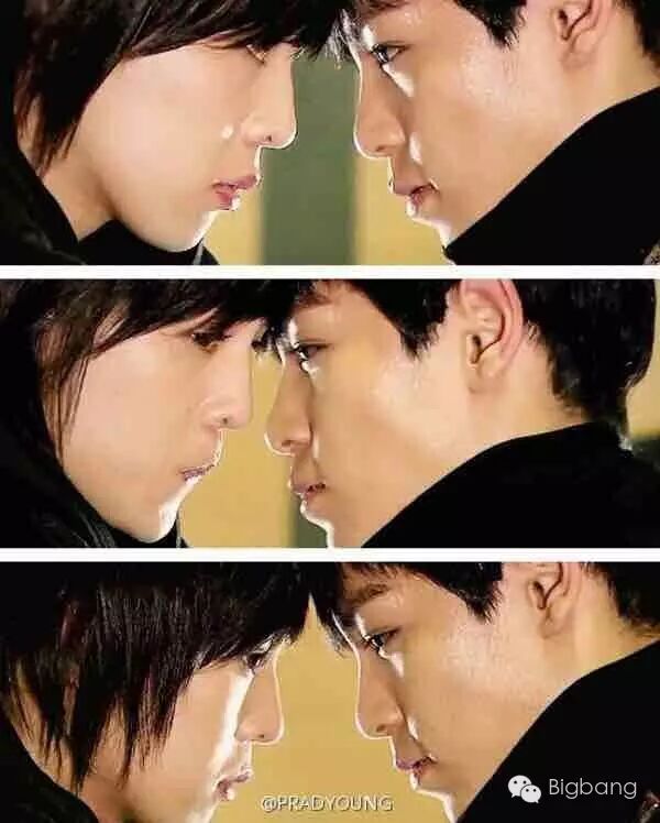 权志龙(G-Dragon)曾表示,很羡慕太阳能够在MV中拍吻戏,因此还放狠话自己一定要吻个够!当被问到想跟谁拍吻戏时,他语出惊人的表示:“要跟胜利接吻”,说完之后自己还笑场。在《SOBER》MV中,权志龙献出了自己的银幕初吻,出道十年了,终于在MV里“分到”了个妹子!还是活的!