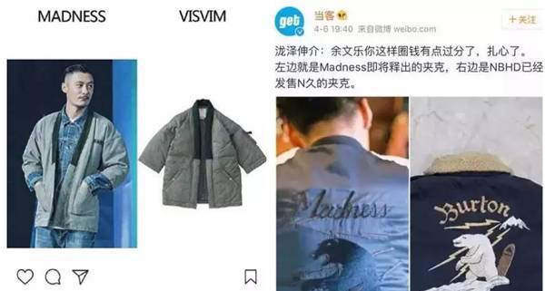 不过提起余文乐的潮牌,不得不提起“打板乐”这个被叫得响亮的外号,网友吐槽余文乐的很多服装都是抄袭的,并没有自己设计的,用其他品牌的衣服给自己的品牌MADNESS打板,“打版乐”就渐渐传开了。