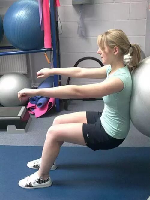 4.墙坐:身体挺直靠墙或者瑜伽球,双腿呈90度,大腿与地面平行,保持这个悬空的坐姿时间越长越好。可以锻炼腰腹和大腿。每天坐2分钟