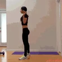 6.负重跳跃深蹲,手持哑铃或者矿泉水瓶,双腿打开与肩同宽,向上跳跃下蹲,脚尖不要超过膝盖,跳100次