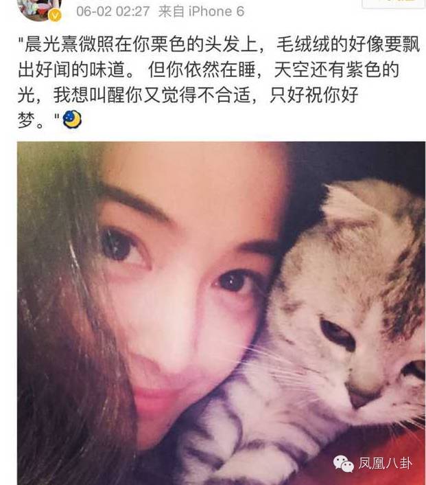 泄露两人恋情的还有韩庚家的猫,今年6月李冰玉在微博与爱猫合影。