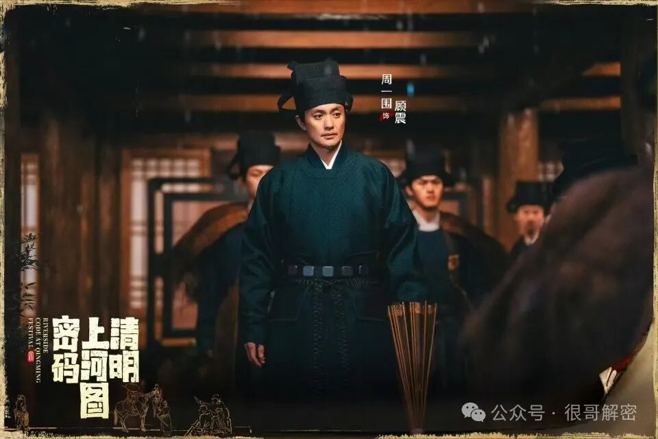 周一围在《清明上河图密码》里饰演的角色名为顾震,一位身处北宋都城开封府,肩负重任的左军巡使。