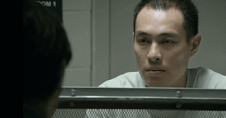 用空洞绝望的眼神把囚犯的压抑演绎得淋漓尽致
