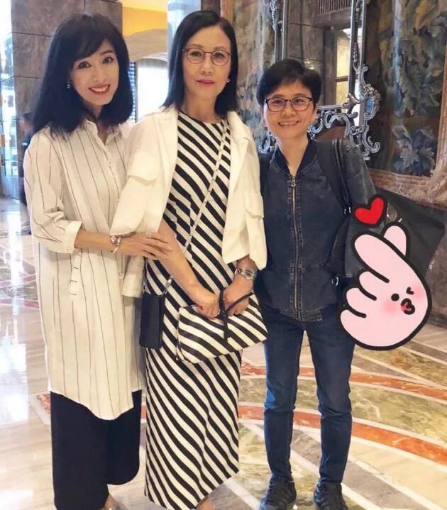 这次的头发全部固定了起来,并且这个时候脸上化了妆,但是因为完全没有经过后期的加工处理,所以可以看到她脸上的法令纹还是比较的明显,而且她穿了一件条纹的衬衫,下面搭配了一条黑色的西裤,比较的宽松自然