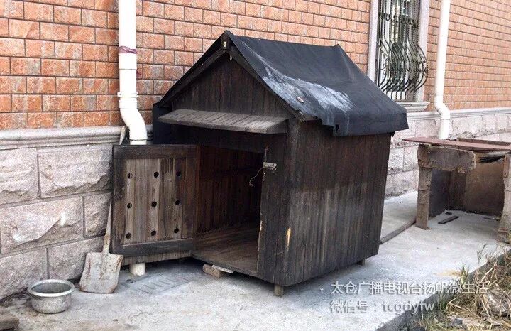 这只肇事狗平日里一直被安置在围墙外东侧的狗窝中。事发时,它是由一条狗链拴着,但是狗链比较长,有2到3米。
