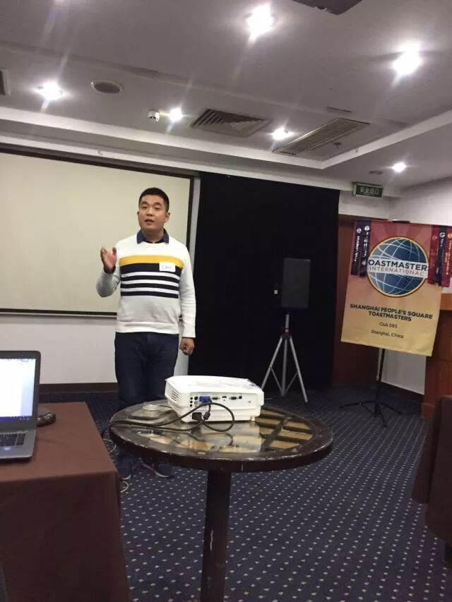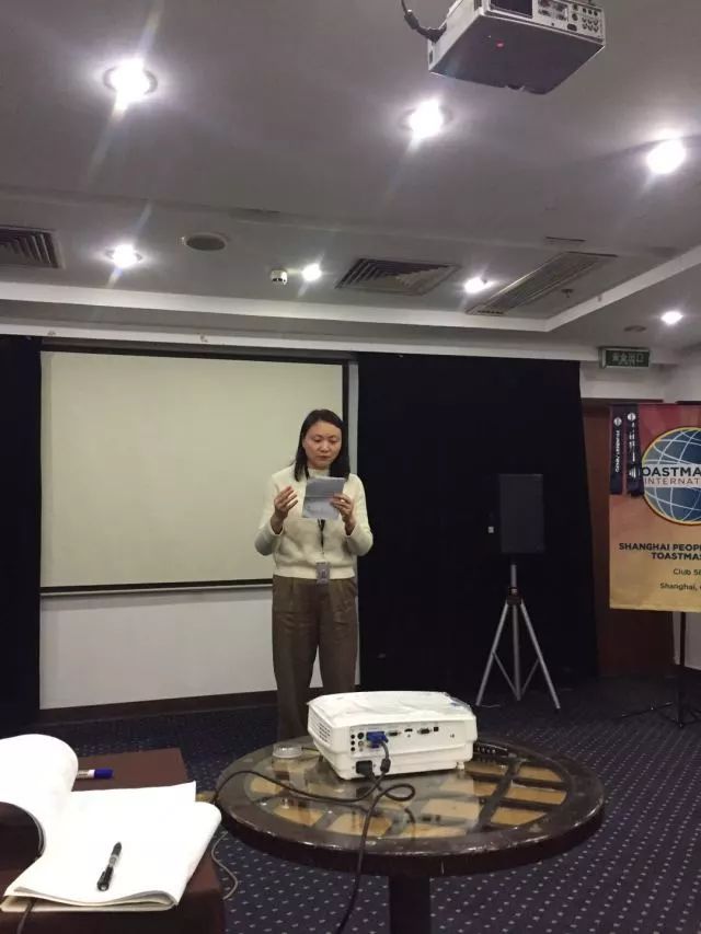 Elegant TME Joan Cui, our former President, joked about different choices we made in our life. We can choose to play cell phone or video games at home, or we can choose to join a Toastmasters meeting. She was pleased that everyone made a wise choice tonight to come to our PS club for inspiration. Her three helpers introduced their roles respectively. When it comes to the most meaningful choice made in 2017, Timer Ranran’s answer is to be an early bird; Ah-counter Rick Li, a professional banker wearing suit and tie, ran half marathon in 2017, and the Grammarian Audrey Chen was glad she made lots of investment in stock market.