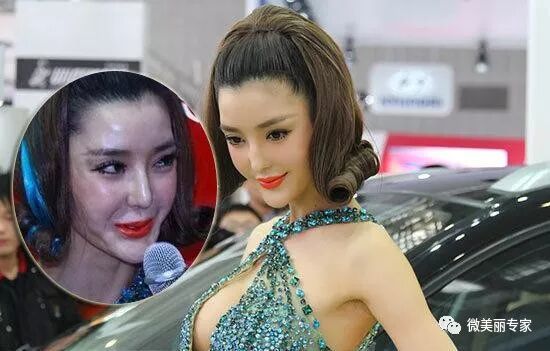 车模李颖芝之前因为有些像范冰冰,并且长相清纯可爱而走红,可是她医生审美过度,面部变得凹凸不平,下巴都快掉下来了。