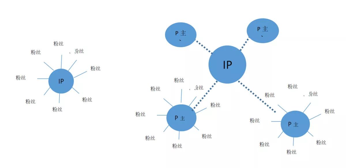 “虚拟偶像—P主—粉丝”的模式让粉丝既依赖于虚拟IP本身,又依赖于P主们;把1vs多的粉丝关系变成了1vs多vs多的关系网;延展了IP本身可触达的用户,也利用多重连接增加了粉丝和IP的粘性。 这种粉丝结构的逻辑你可以理解为早期的百度贴吧,P主们就像是百度贴吧里实现管理和推广的吧主们。