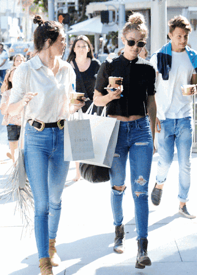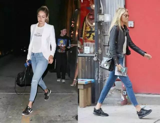 首先,紧身牛仔裤和运动鞋的cp,想必也是风靡街市,帅气不羁又够时髦百搭。