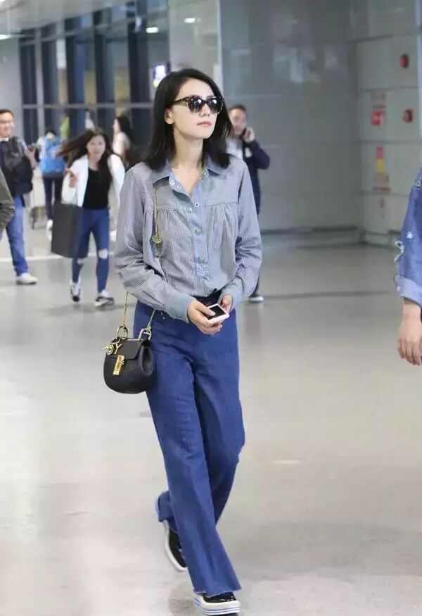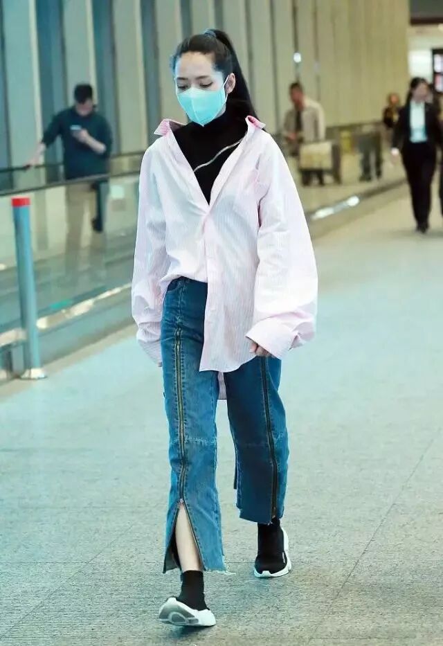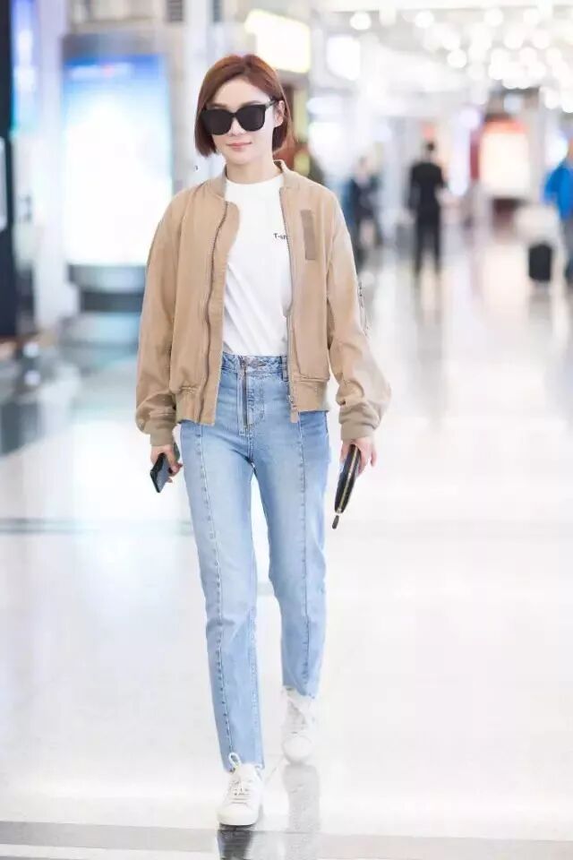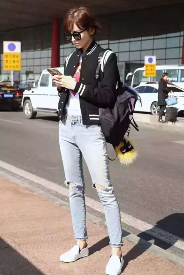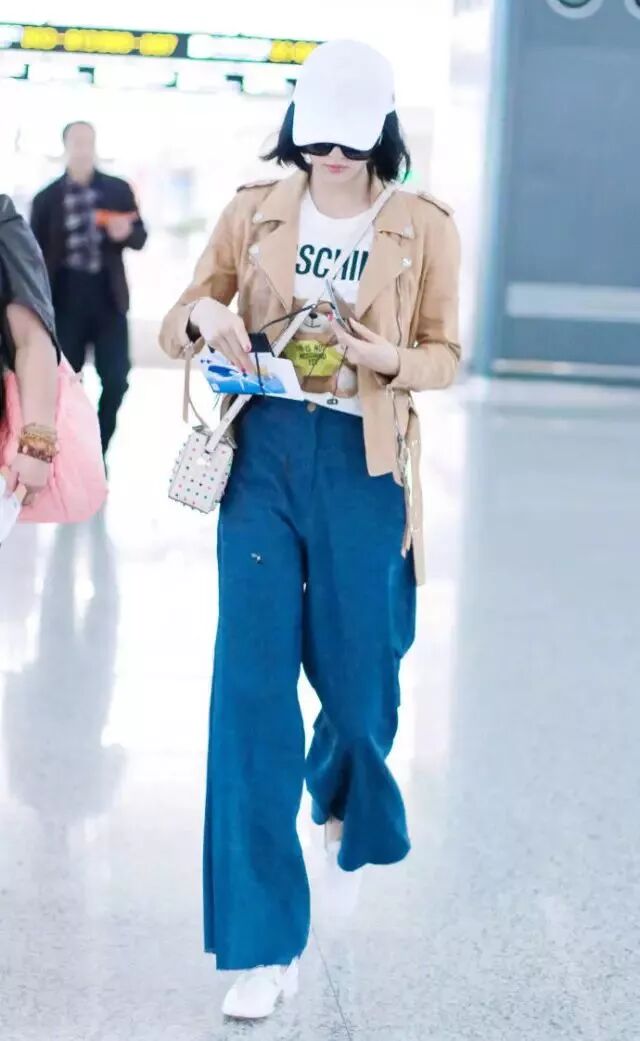 景甜现身机场,用卷边牛仔裤搭配棒球夹克和滑板鞋。真的有被这一身帅到,可以说是很叛逆很有态度了。