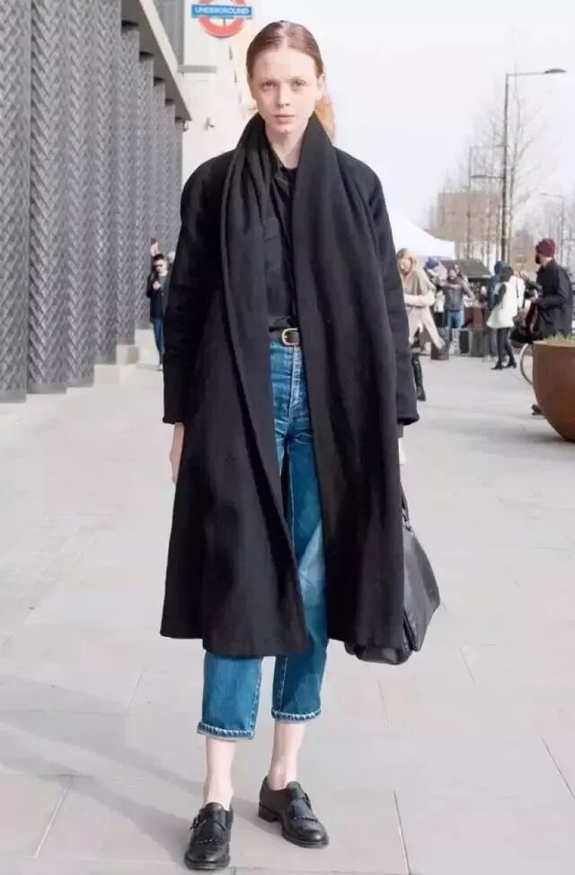 牛仔裤搭配中长款或长款外套也非常时髦,从臀部到裤脚都是直筒,完全不挑人,九分长度最显腿长,如果觉得会冷穿个堆堆袜不缺时尚的同时也会让你感受温暖。