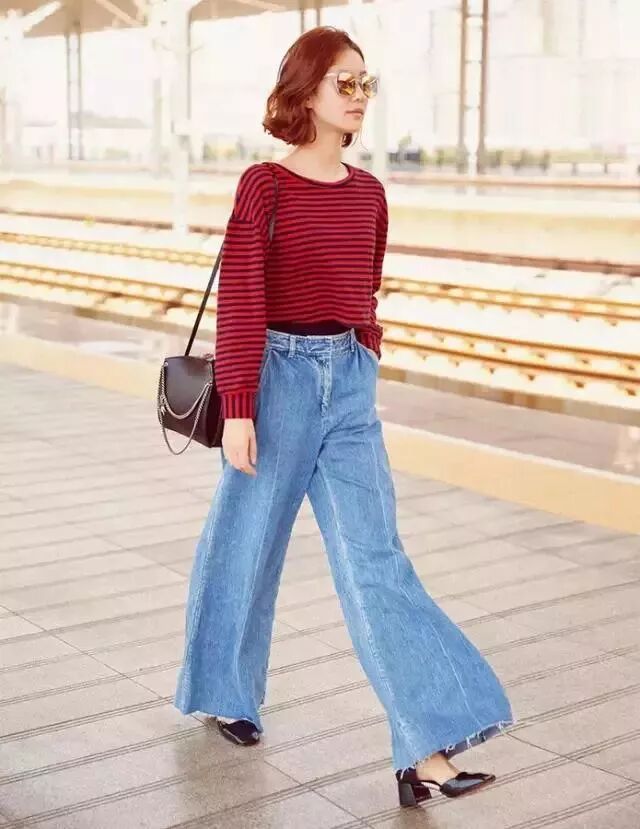 在潮人街拍中,各种阔腿裤的穿搭也是不少,需要注意的就是一点:松紧有度。